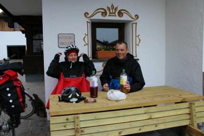 Voll bepackt und im Sonnenschein sind wir um 9:00h von Grafrath losgefahren. Über Inning, Stegen, Eching, Schondorf, Utting, Entraching, Thomas Spezial-Abkürzung über einen Fluss ohne Brücke. Da haben wir das erste mal nasse Füsse bekommen. Thomas inklusiv Schuhe und Socken. Susi hat die Schuhe und Scken vorher ausgezogen (Weichei). Danach haben wir uns in Theining gestärkt und sind dann weiter gefahren. Eigentlich wollten wir bis Lechbruck fahren, aber 5 km vor Schongau war der Akku bei Thomas leer. Also haben wir in Schongau eine Übernachtung gesucht und gefunden. Nachdem wir unsere "Wunden" versorgt haben, sind wir eine Runde spazieren gegangen und dann zu einem Itakiener mit einem sehr guten Wein. Danach sind wir ins Bett gefallen. Heute (Freitag) sind wir um 7:30h aufgestanden, wollen jetzt Frühstücken und werden im Nieselregen bis Füssen fahren. Also bis später.